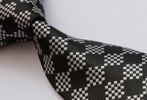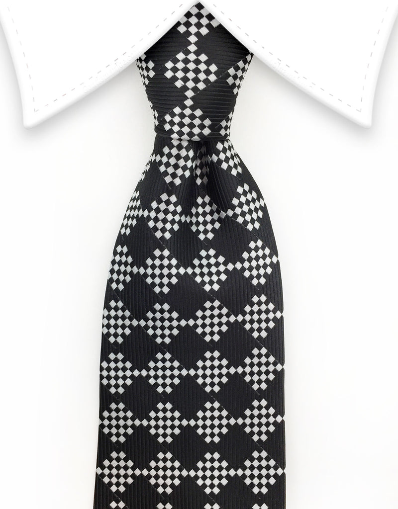 This classy, silver and black necktie will give you confidence and style.