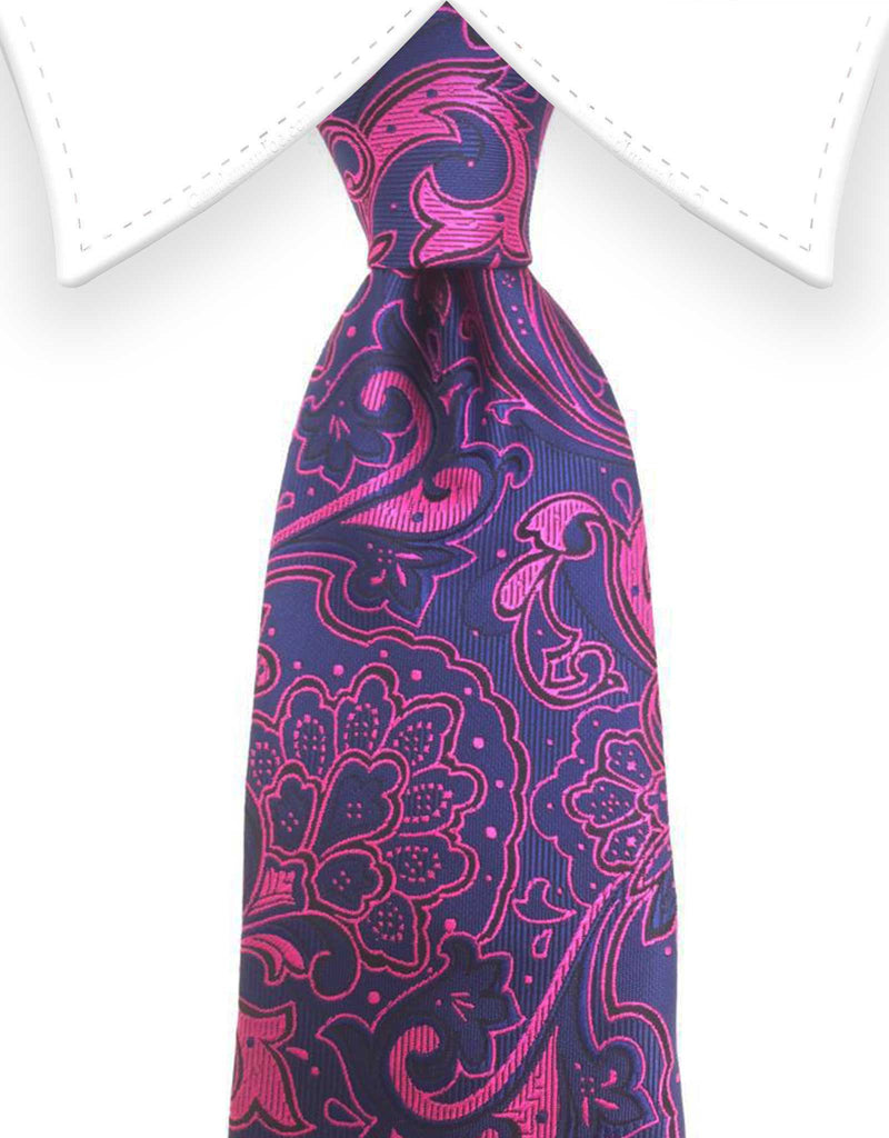 This navy blue and fuchsia paisley tie is a real stunner! You can have some sophisticated fun with this modern classic in this bold color combination.