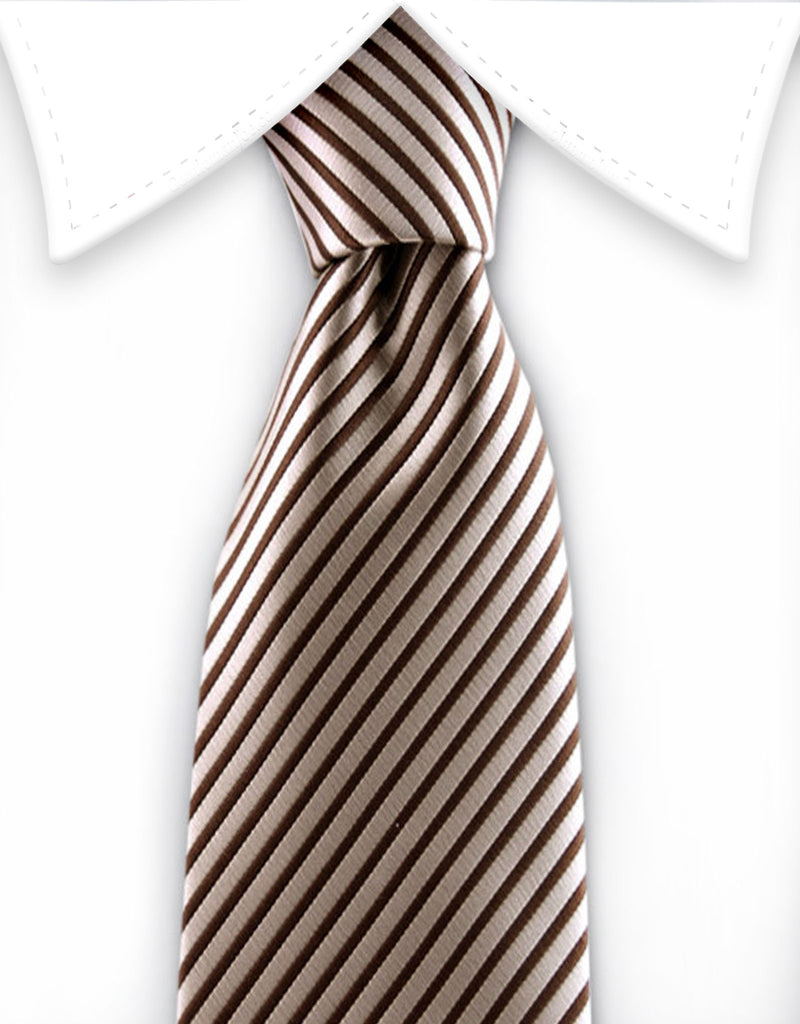 A great teenager tie for the conservative, comfortable, earthy teen.  Light brown and dark brown pinstripes make this a very stylish necktie for your young man.